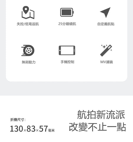 旗艦航拍配套,助你暢快飛行,隨心創作!千萬次折疊,讓每一次出行更省心!4K像素成像質量細膩穩定,高清像素帶來細膩豐富的影像畫質,讓你的航拍創作更加隨心輕鬆拍出電影級畫面。